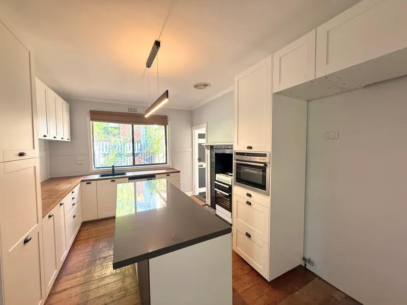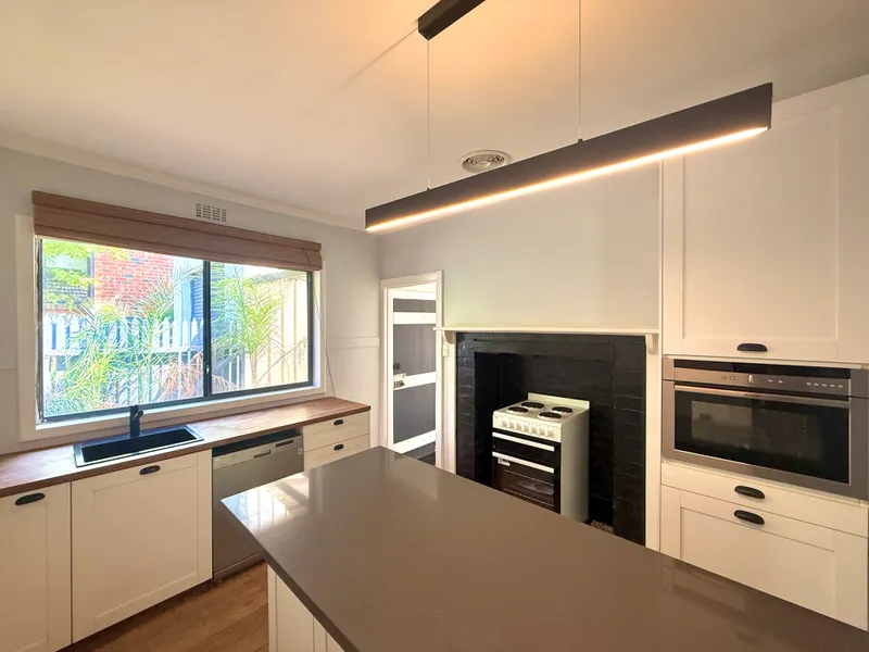 Inside, the home features three well-sized bedrooms, all with built-in robes. The spacious lounge is filled with natural light and is equipped with a split system for year-round comfort, while ducted floor heating throughout the home ensures warmth throughout the cooler months. At the heart of the home, the classic country-style kitchen offers plenty of space for everyday living, complete with an electric cooktop and oven and dishwasher. The bathroom has been renovated and includes a separate powder room for added convenience.