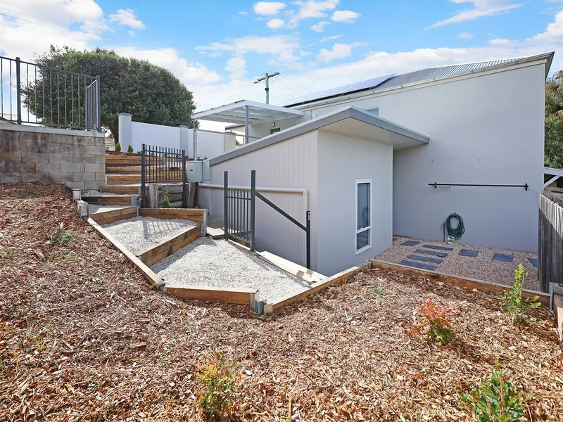 Downstairs, both generously sized bedrooms are complemented by a shared bathroom and a large, well-appointed laundry. Designed for year-round comfort, the home includes reverse-cycle air conditioning for efficient heating and cooling. Solar panels further enhance the property's appeal by helping to keep electricity costs low.
