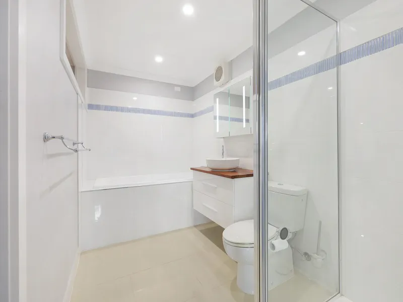 This renovated two-bedroom home offers space, comfort, and modern living across two levels. The upper floor features a light-filled layout with a stylish kitchen, living area, separate lounge, and a convenient powder room. The contemporary kitchen is fully equipped with stainless steel appliances, perfect for everyday living and entertaining.
