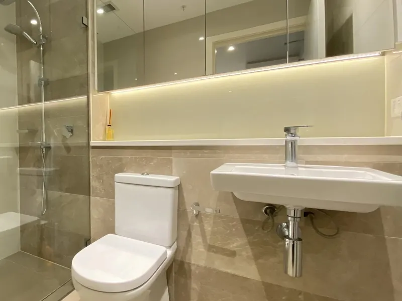 * Modern bathroom and internal laundry with washer dryer combo