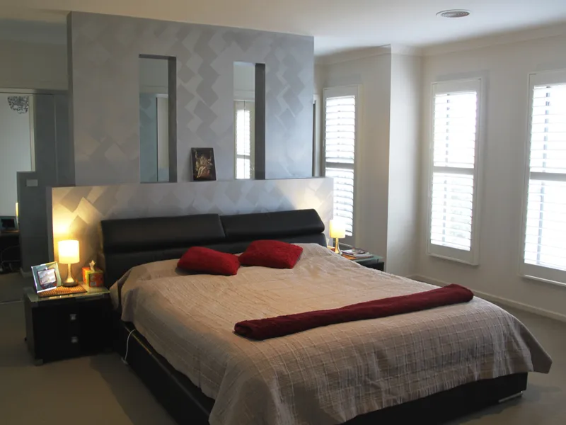 - Master bedroom with built-in robe, carpet flooring, and private ensuite