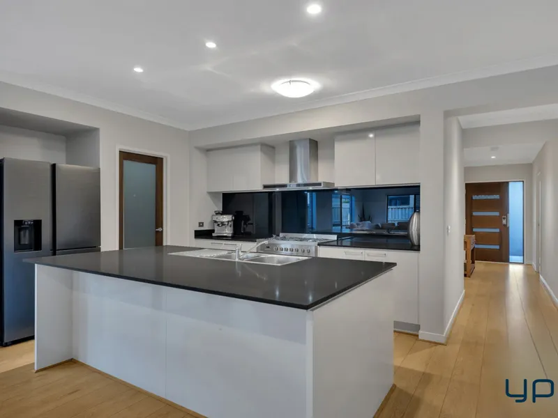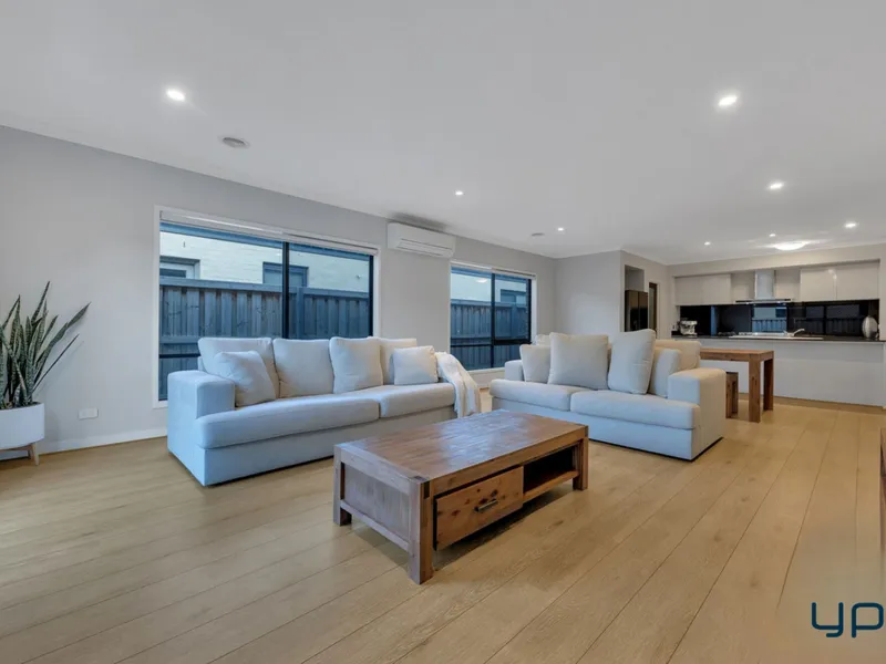 The expansive open-plan kitchen, meals and dining area is the heart of the home, offering plenty of space perfect for family gatherings. The stylish kitchen is a standout, equipped with a dishwasher, walk-in pantry and ample cooking space.