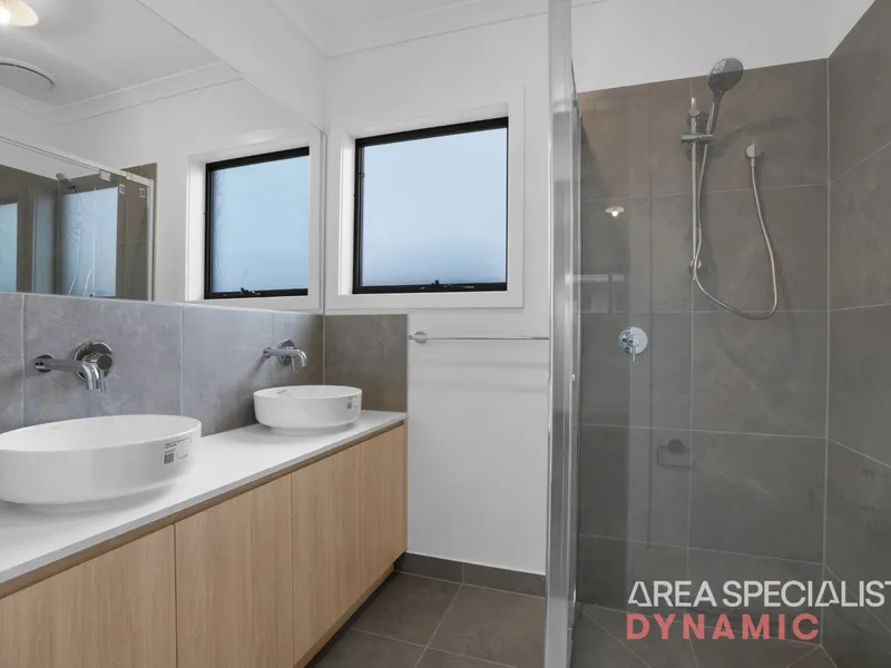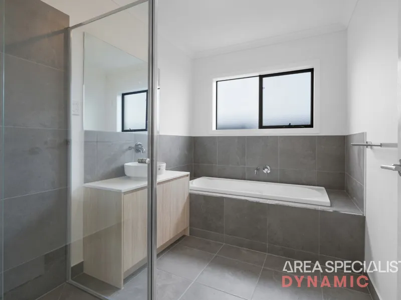 Positioned in a growing and family-friendly pocket of Werribee is a brand-new four bedroom, two bathroom home designed for modern comfort and easy living. The master bedroom is complete with a walk-in robe and private ensuite, while the remaining bedrooms are generously sized with built-in robes and serviced by a stylish central bathroom featuring a bathtub and quality finishes.