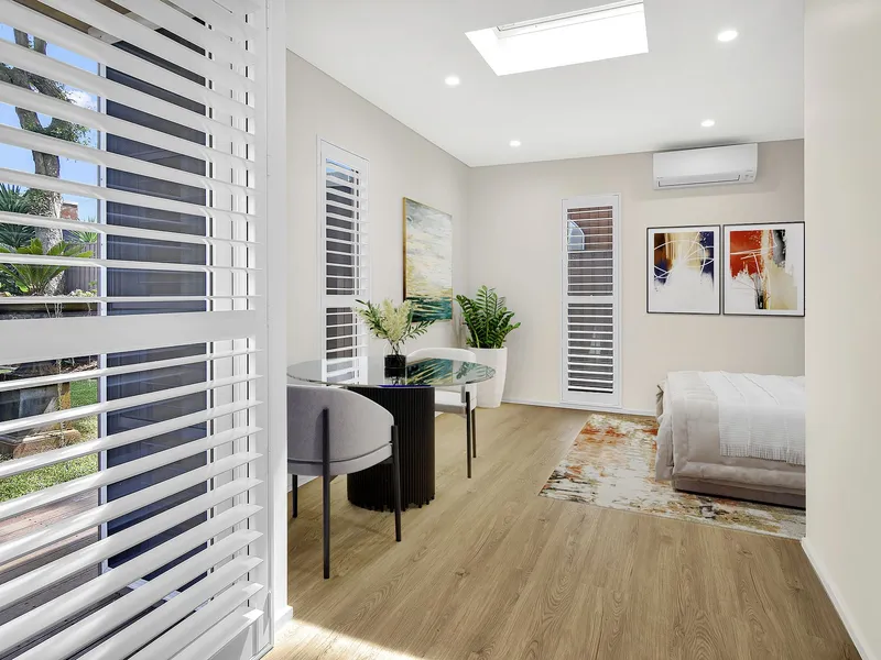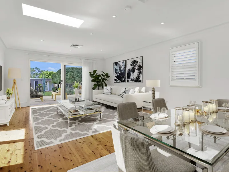 Set in one of Willoughby’s most tightly held streets, this picturesque Federation-era residence blends timeless charm with modern functionality in a family-friendly, village-style community. Beautifully renovated throughout, the home celebrates its heritage with lovingly restored period features, while offering a floorplan reimagined for today’s lifestyle of seamless entertaining and family comfort. Privately nestled on a lushly landscaped parcel, this unique offering includes four generous internal bedrooms plus a fully self-contained one-bedroom studio—ideal as a guest suite, teenage retreat, home office or granny flat, offering ultimate flexibility for growing families. Positioned just a short stroll to Willoughby’s vibrant village, parklands, boutique cafés, dining, express city buses and top local schools, this home is a rare blend of character, comfort, and convenience.