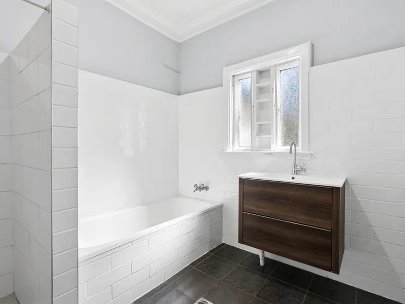 11-foot ceilings, ornate decorative cornices, and beautifully polished hardwood floors throughout. The floor plan features a warm, inviting main living area complemented by a versatile library nook and a separate, spacious dining room perfect for entertaining. Each of the three generously sized bedrooms is bathed in natural light, offering a serene retreat. Set on a prime corner block, the property includes a fully fenced garden, a single garage, and a carport with convenient wide side access. Ideally located just 200m from Windsor Train Station, this home offers effortless access to local shops, cafes, and reputable schools