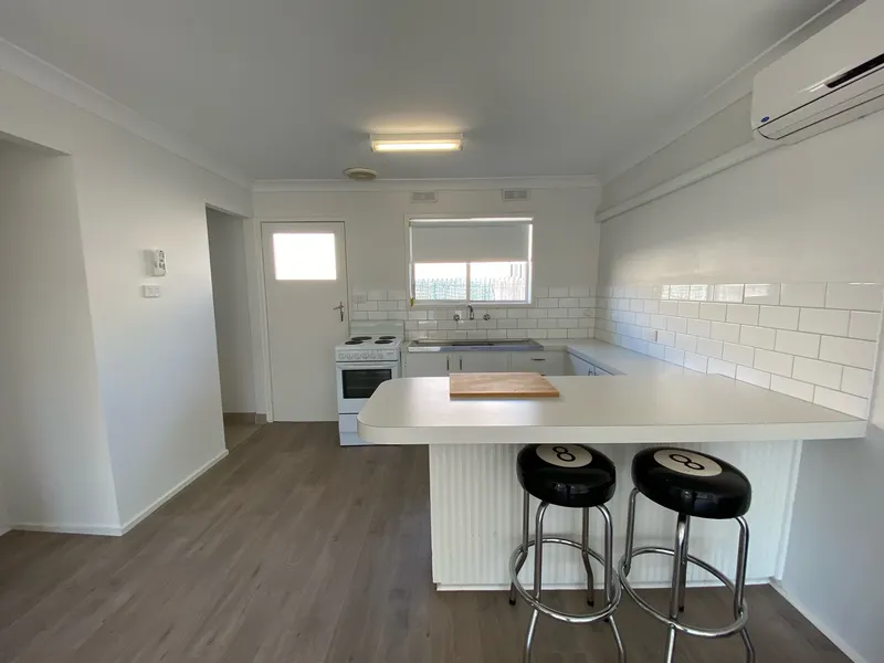 Only a moments walk to CBD Wodonga, living centrally has never looked so good! This one bedroom has been fully renovated unit with split system heating & cooling, spacious bedroom and bathroom and a fully renovated kitchen with electric cooking. No gas to the property, electricity only and water bills included in the rent. The final touches to this unit have a communal BBQ area and garden area.
