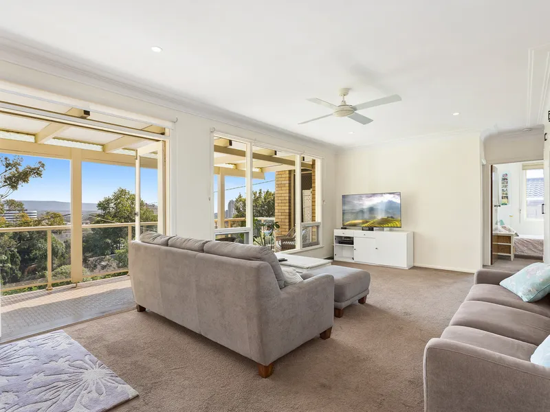 Boasting panoramic views and prime CBD proximity bordering Mangerton Hill, in a leafy no-through street, this impressive home offers the perfect blend of comfort and convenience. Oversized and neatly maintained, with three living areas including a parents' retreat downstairs, idyllic alfresco entertaining spaces, and glorious district outlooks encompassing the ocean and escarpment, it provides a highly versatile haven where family life can flourish. Relax in total peace and privacy while enjoying easy access to shops and quality schools, vibrant dining precincts, spectacular beaches and the M1.