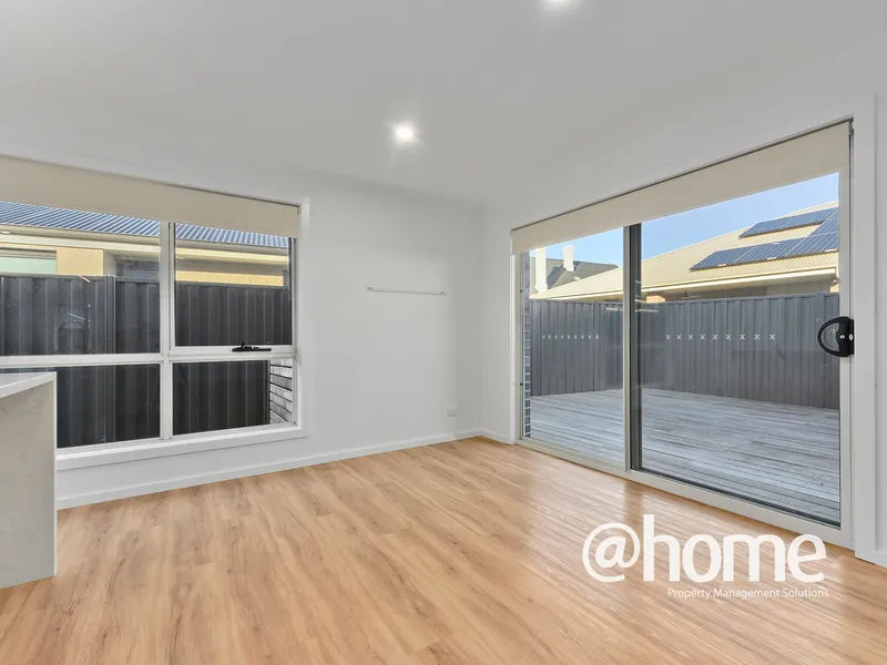 CONFIGURATION: This near new, thoughtfully designed home is perfect for those seeking comfort, style, and low maintenance living. Comprising 3 generous sized bedrooms, the spacious master features a walk in robe and private ensuite, while the remaining two bedrooms include built in robes. Open plan kitchen, living, dining with access to the outdoor deck, perfect for entertaining as well as an additional study nook. The home includes a single garage with internal access and laundry.