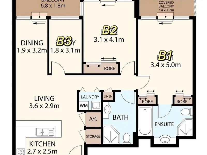 • Two bedrooms with built-in wardrobes