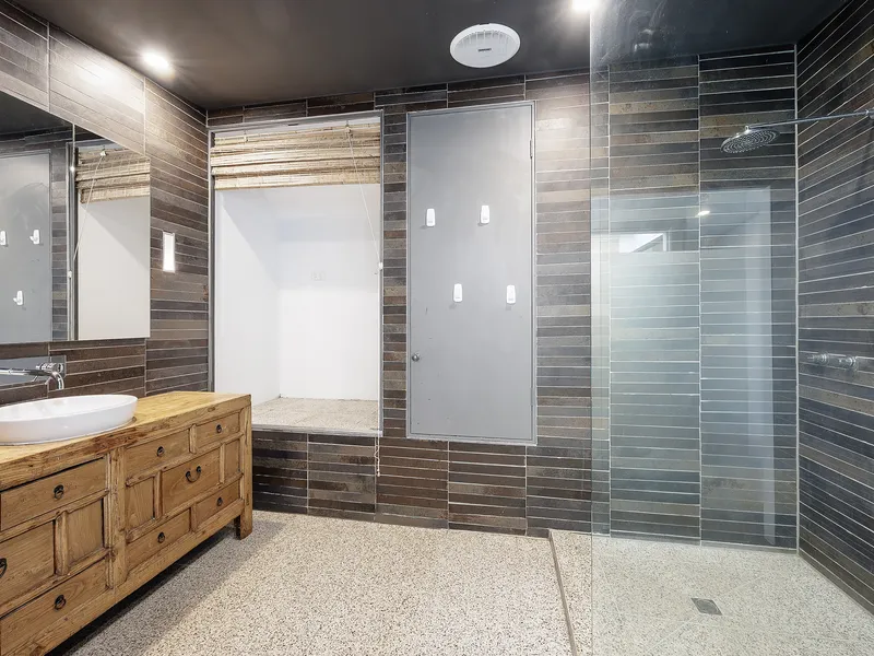 Central bathroom servicing the lower level