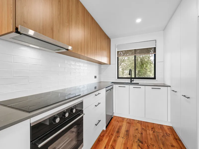 Step inside to discover a light filled combined lounge and dining area that flows seamlessly into a modern kitchen, complete with ample cupboard space, a dishwasher, and quality electric cooking appliances.
