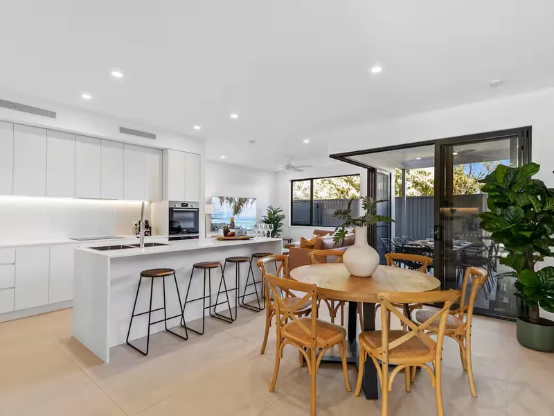 Open-plan living and dining area filled with natural light