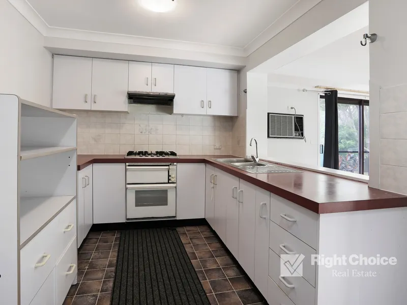• Neat and tidy kitchen with ample cupboard space and gas cooktop