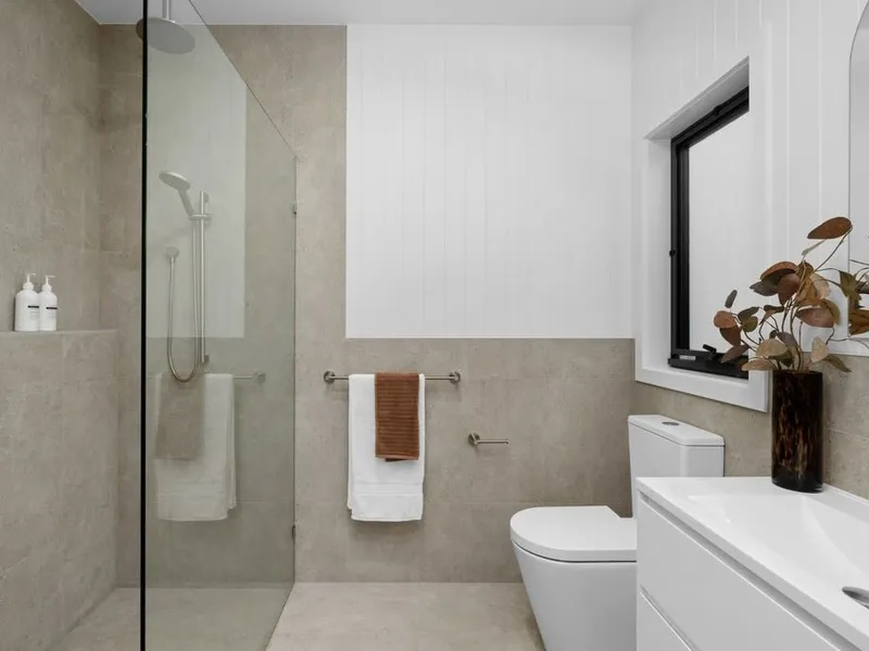 - Third bathroom, featuring a wet room design with freestanding bath