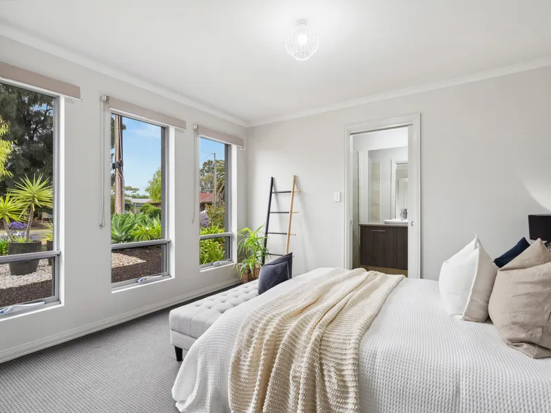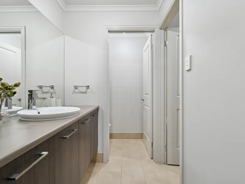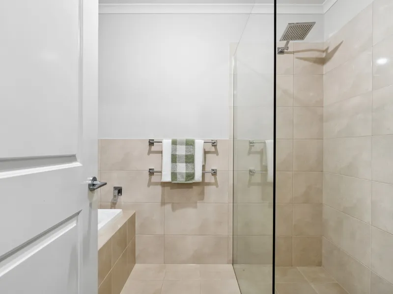 The master bedroom is privately positioned at the front of the home and features a walk-in robe and private ensuite. Bedrooms two and three are located in their own section of the home and are serviced by the main bathroom, complete with a separate bath and shower.