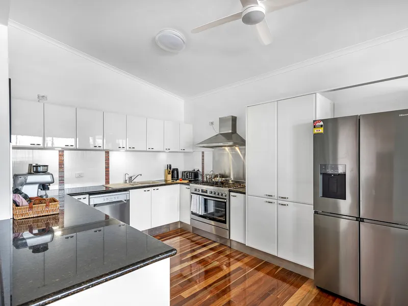 The property features four generous bedrooms, including two king bedrooms, one double bedroom, and a bunk room with a double and single bed, comfortably accommodating a range of living arrangements. With three bathrooms, the home is well suited to shared living without compromise.