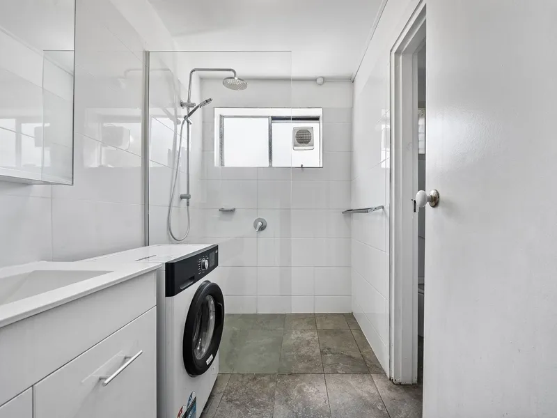 Accommodation includes two well-sized bedrooms, a central bathroom, and a functional kitchen and living area filled with natural light. Completing the package is a dedicated car space for added convenience.