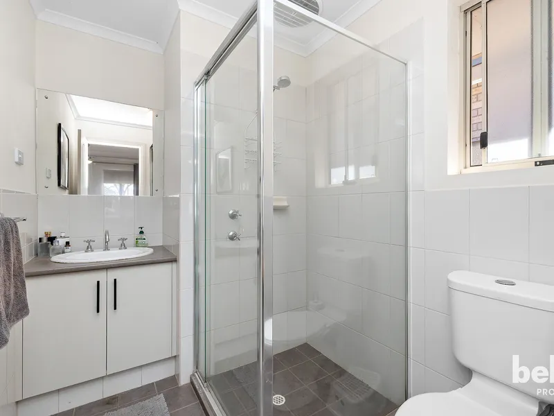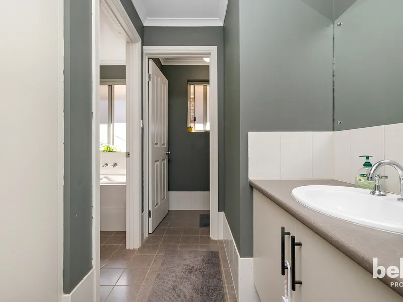 The home offers three well-sized bedrooms, with the master bedroom featuring a walk-in robe and private ensuite, while the remaining bedrooms include built-in robes and are serviced by a central bathroom.