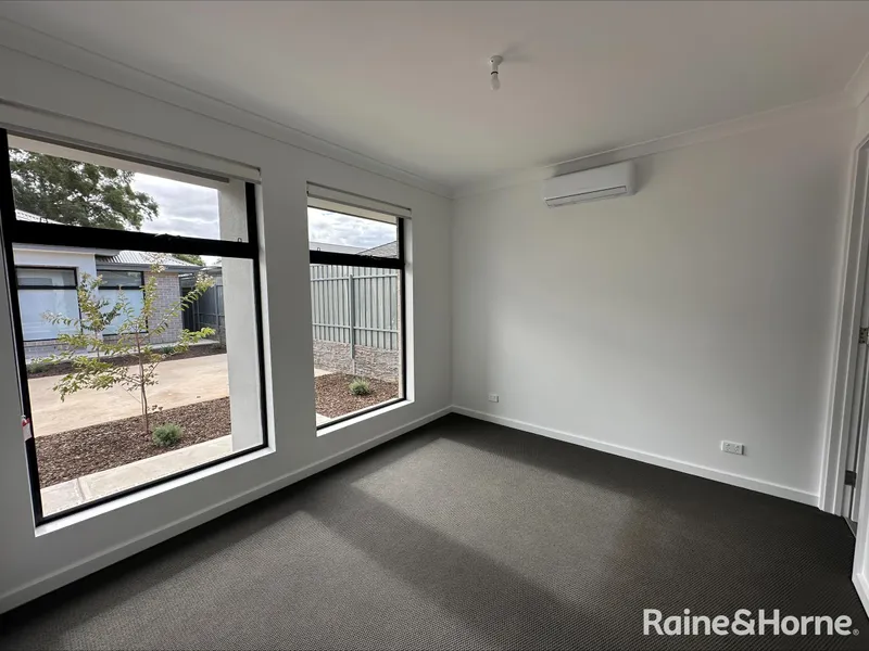 The open plan living and dining area is the heart of the home and also includes a split system air conditioner to keep you comfortable in every season.