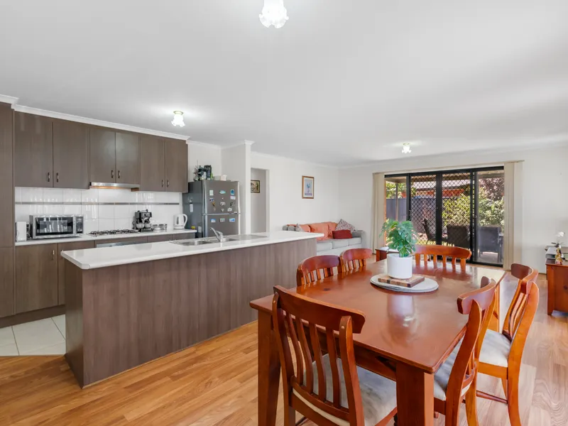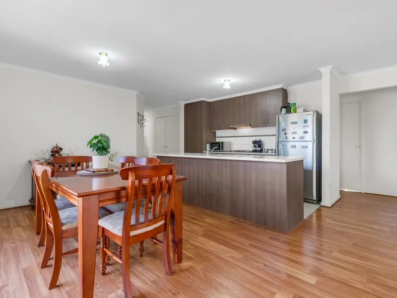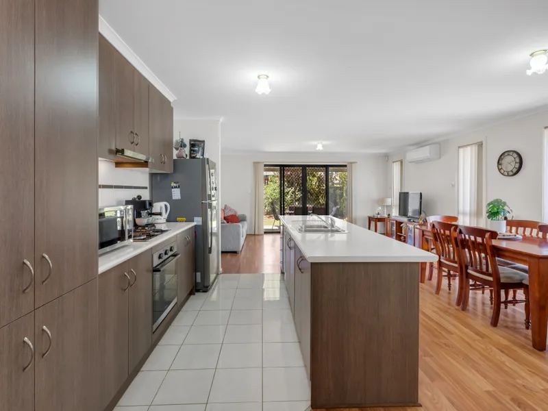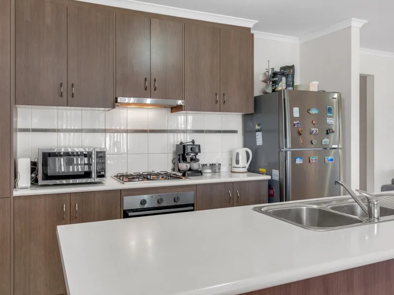 The home features a practical layout with generous open-plan living and dining areas, complemented by a modern kitchen fitted with ample storage, quality appliances, and a large island bench—ideal for both everyday living and entertaining.