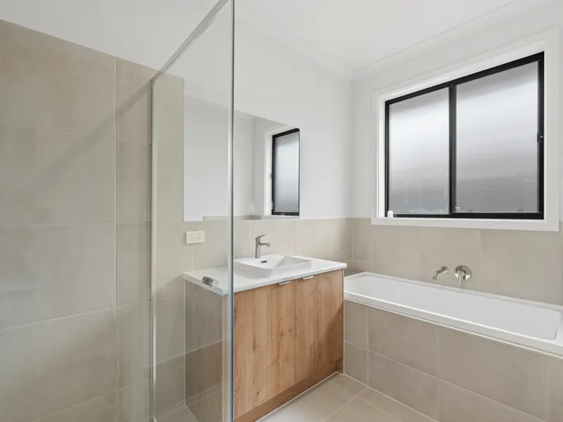 The home comprises four generously sized bedrooms, with the master featuring a walk-in robe and private ensuite. The remaining three bedrooms include built-in robes and are serviced by two stunning bathrooms with quality finishes. Additional features include reverse cycle ducted heating and cooling, a well-appointed laundry with storage, and a low-maintenance rear yard with a grassed area. Parking is well catered for with a double garage plus additional off-street spaces.