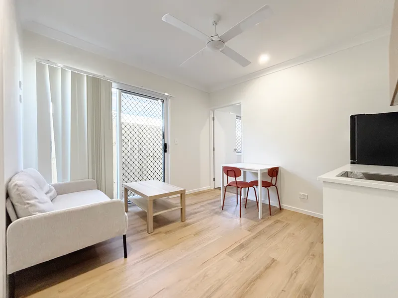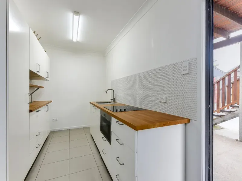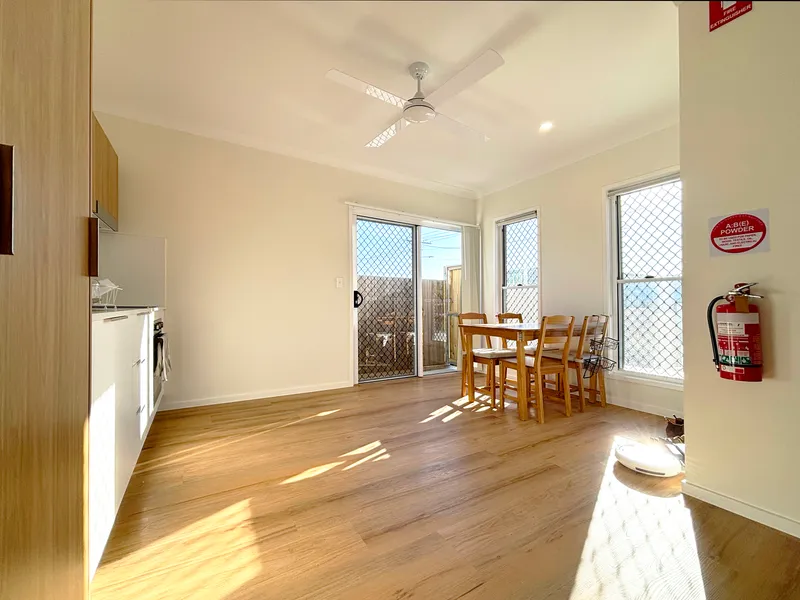 Downstairs includes two bedrooms, a large living area, kitchen, bathroom, private courtyard and separate access. The space is air-conditioned and fitted with a security system.
