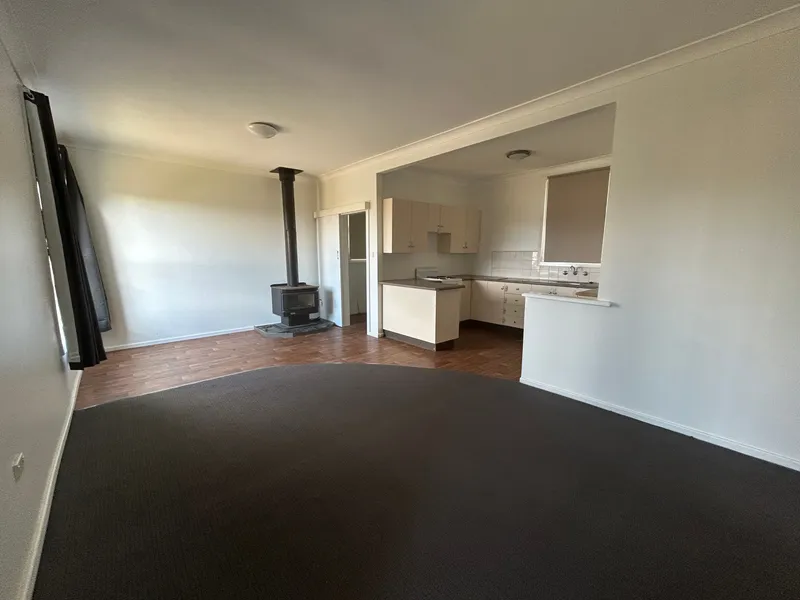Three bedroom weatherboard home with fresh paint inside and out boasts new carpet, a woodfire for those cold Armidale nights and an open plan living. It also features,