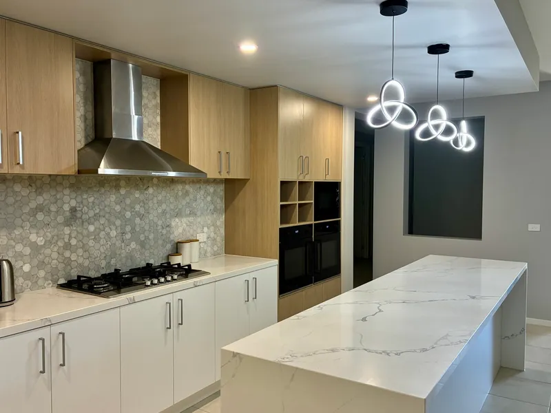 The showstopping kitchen sits at the heart of the home and features marble benchtops, stylish pendant lighting, a double oven, built-in microwave, gas cooktop, dishwasher and an expansive butler's pantry with double sink and ample storage – perfect for those who love to cook and entertain.