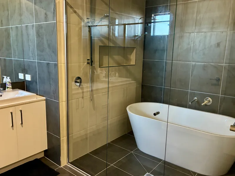 The home features five well-sized bedrooms, including a luxurious master suite positioned at the front of the home with double door entry, a large walk-in robe and a stunning ensuite. The ensuite includes floor-to-ceiling tiles, double vanity, two showers, a freestanding bath, and a separate toilet, creating a true retreat feel. Designed for modern living, the property offers three separate living areas, a dedicated theatre room with double doors, and a convenient study nook, providing plenty of space for work, relaxation and family time.