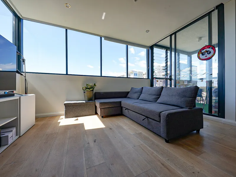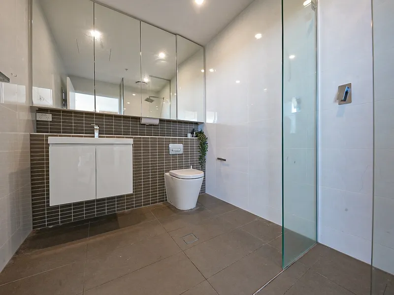 Designed with a large, considered floorplan that separates the bedrooms from the living areas, this apartment enjoys excellent natural light, sweeping outlooks from every room, and two balconies capturing city and district views.