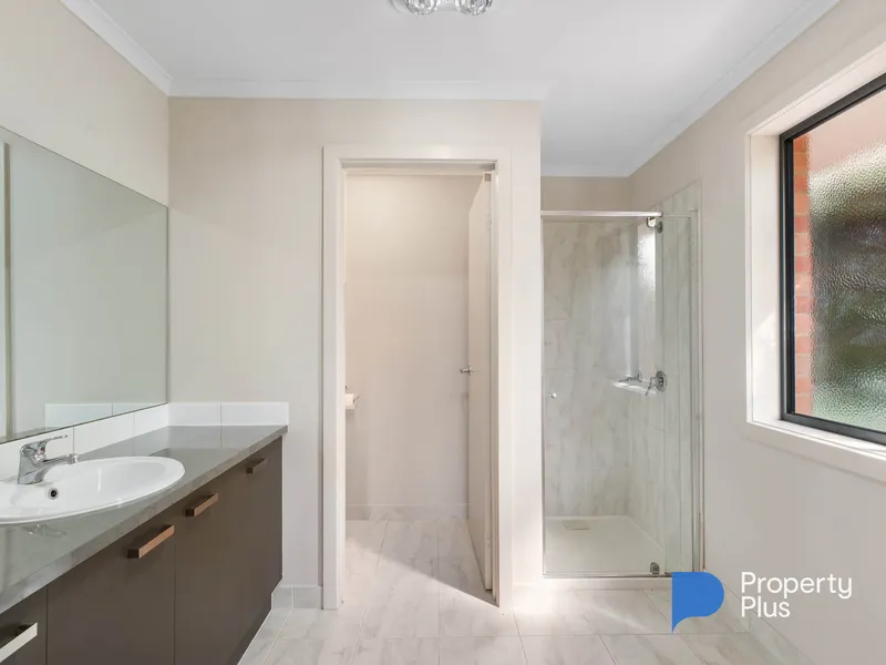 Designed to capture natural light, the home features multiple north-facing living areas, including a welcoming lounge and a spacious open-plan kitchen, meals and living zone. The well-appointed kitchen includes a large island bench, 900mm stainless steel appliances, dishwasher and ample storage, all flowing seamlessly through to a generous alfresco area perfect for entertaining year-round.