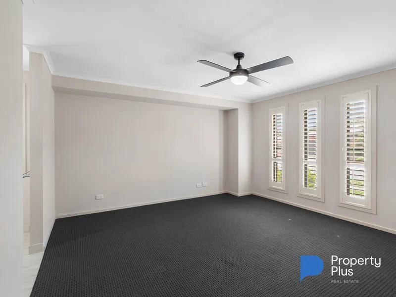 The home comprises four bedrooms, including a master suite positioned at the front with a walk-in robe and private ensuite. The remaining bedrooms are fitted with built-in robes and ceiling fans, with one offering flexibility as a study or guest room.
