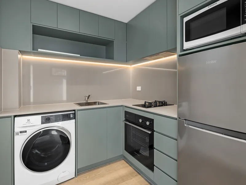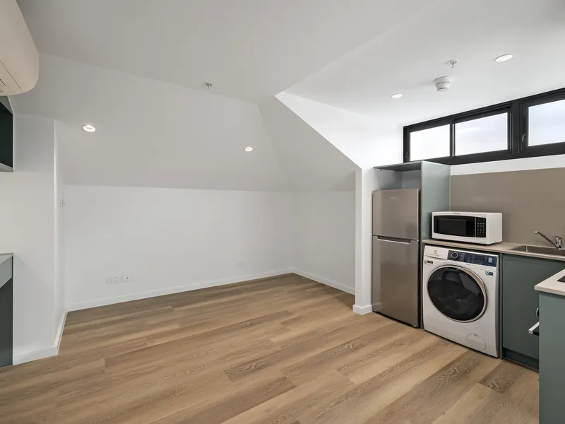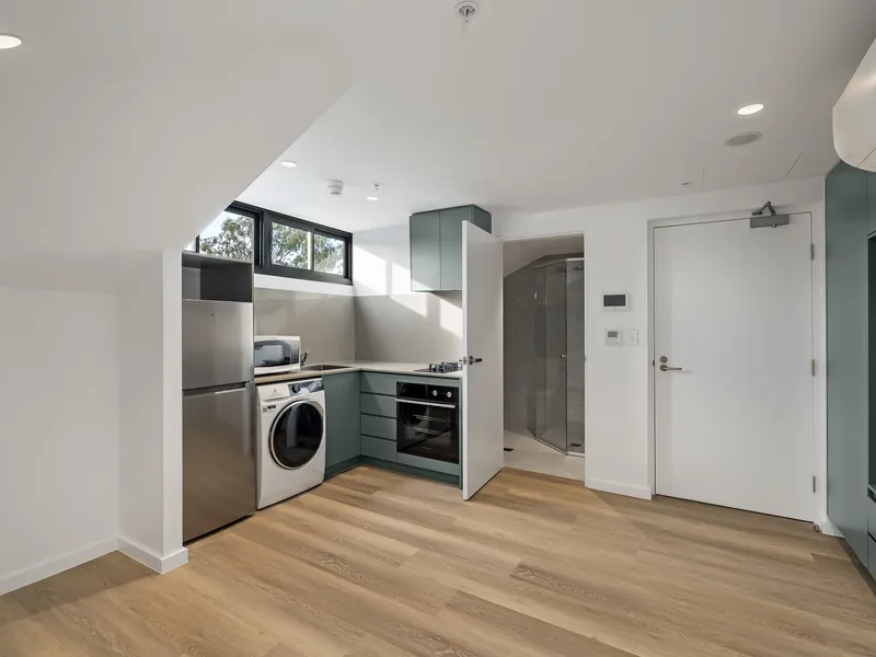 Revealing a chic contemporary aesthetic with polished timbers and modern detail, this self-contained studio is thoughtfully equipped with a luxury kitchen and a stylish urban bathroom. The seamless in/outdoor design features an open-concept layout with dual access to both a terrace/balcony. Ideally situated within a new complex, this elegant studio is just 700m from Ashfield Station, Ashfield Mall, and a vibrant array of dining options.