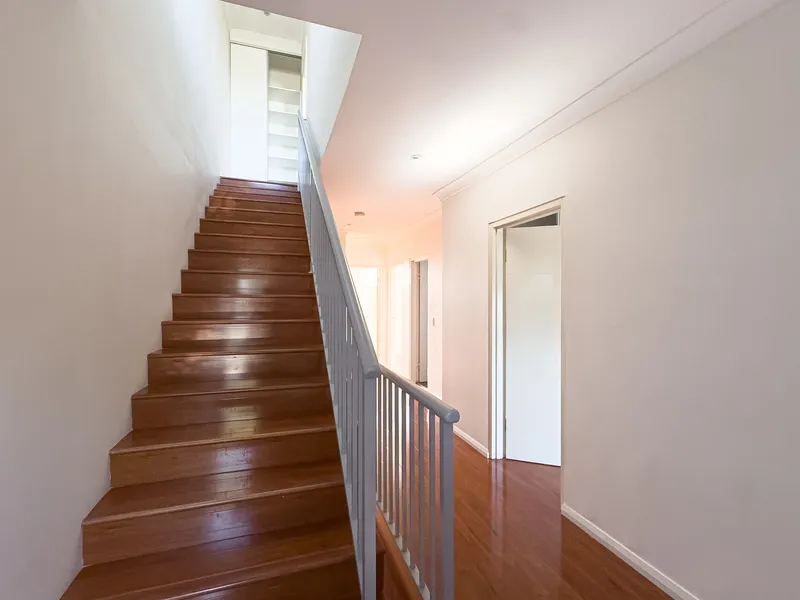Ideally located in a quiet setting, only a very short walk to the shops, schools and Railway station stands this large town-house and contain.
