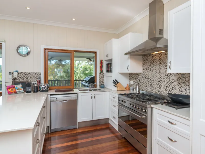 - Functional kitchen with an electric cooktop and oven, fridge and ample bench & cupboard space