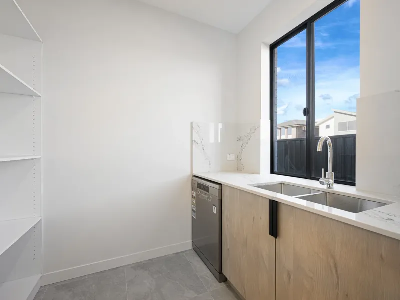 • Modern laundry with ample storage and external access