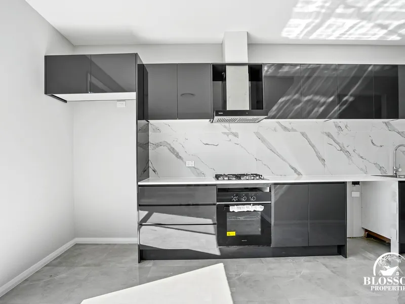 The open plan living and dining layout with high ceilings gives this masterpiece a welcoming feel. The gourmet kitchen features a beautiful Caesar-stone bench top with stainless steel appliances.