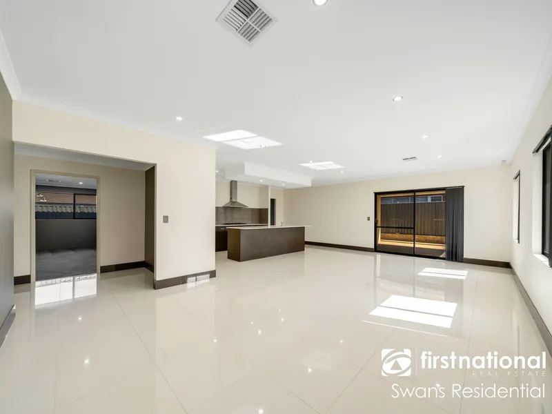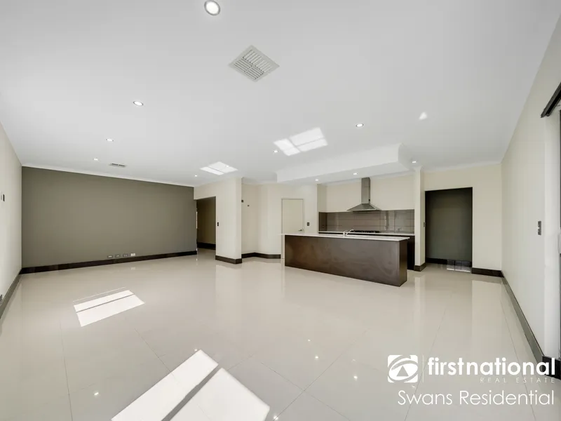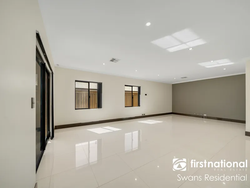 • Stylish open-plan living, dining, and kitchen area with seamless access to the paved outdoor entertaining space