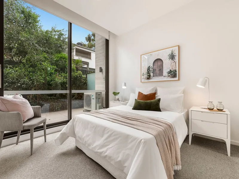 Set within a premium, boutique complex, this beautifully appointed ground-floor apartment offers a perfect blend of style, comfort, and low-maintenance living - highlighted by its impressive proportions and seamless indoor-outdoor flow.