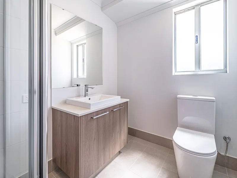 The main bathroom includes a bathtub, ideal for families, while the oversized laundry impresses with its wide bench and ample storage, making day-to-day tasks simple and organised.