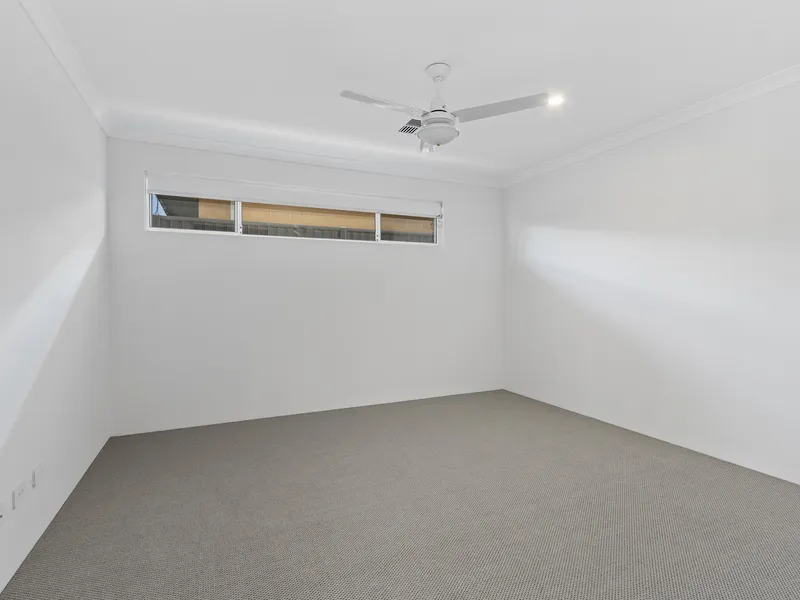 At the other end of the home, you'll find three additional bedrooms, all with mirrored built in robes and ceiling fans, offering comfort and convenience for the whole family. Adjacent to the bedrooms, the main bathroom features a bathtub, a separate toilet and a large double linen cupboard for extra storage.