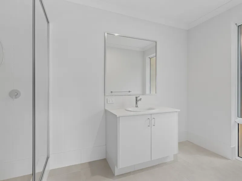 As you step inside, you are greeted by the spacious master suite, featuring a large walk-in robe with dual-sided railing and a private ensuite with a sizeable shower.