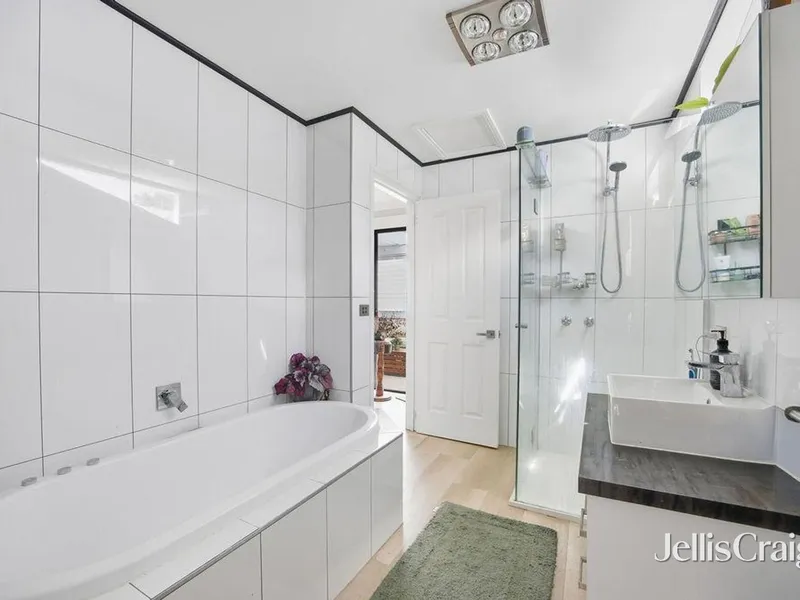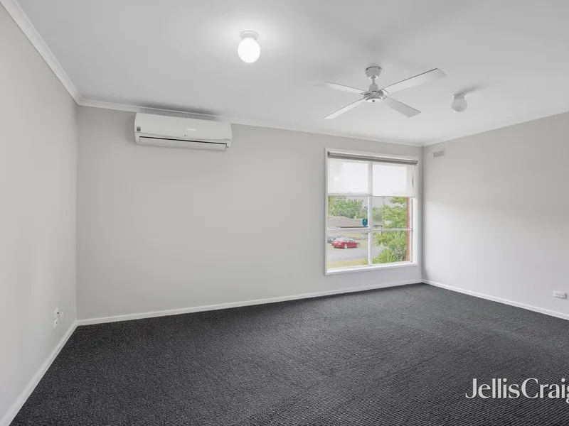 The home features three spacious bedrooms, all fitted with built-in robes, and a central two-way bathroom complete with both a shower and a bath.