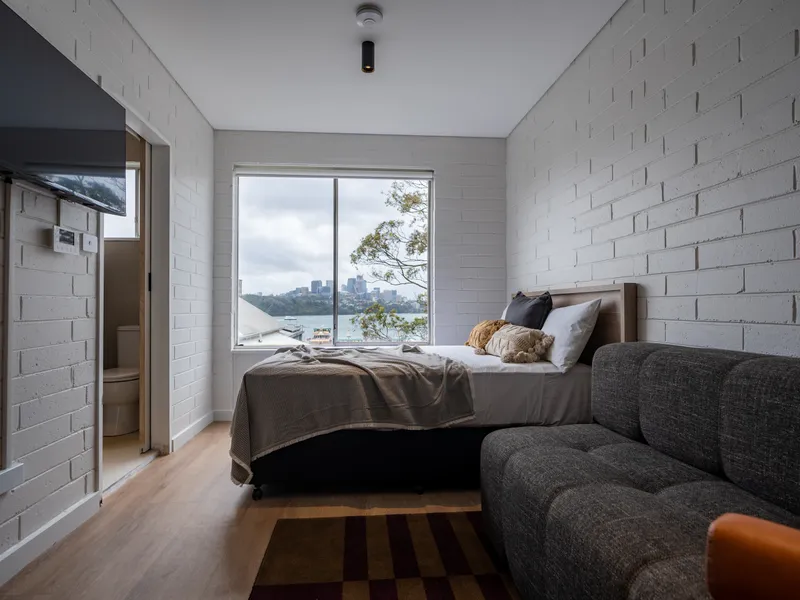 -Corner Retro. Balmain Corner Retro Studios are our largest rooms at 23m² providing you with more space. Featuring standard double-sized beds, air-conditioning, private ensuite, fully equipped kitchenette, lounge and large TV.There are 3 types of Corner Retro Studios available: