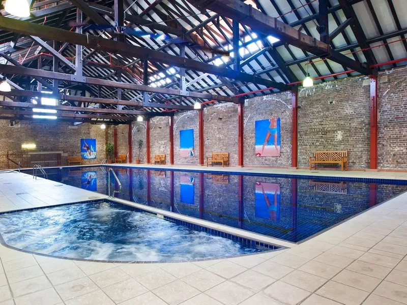 - Resort-style facilities including a gymnasium, sauna, and heated indoor swimming pool