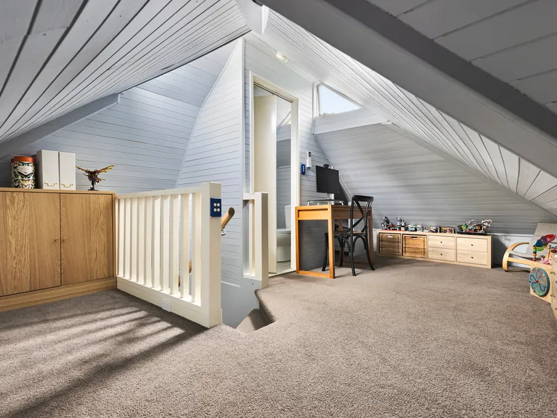 - Versatile attic-style retreat with a powder room provides valuable additional space-ideal as a home office, creative studio or quiet escape