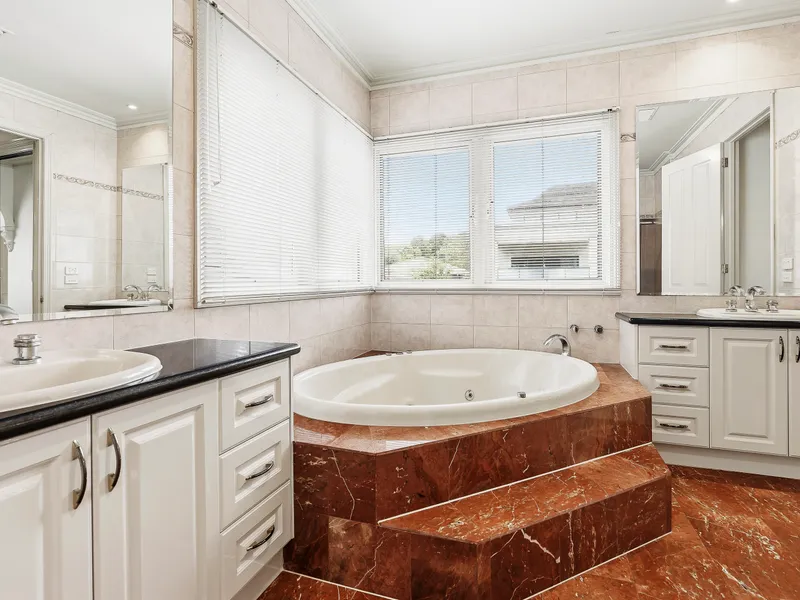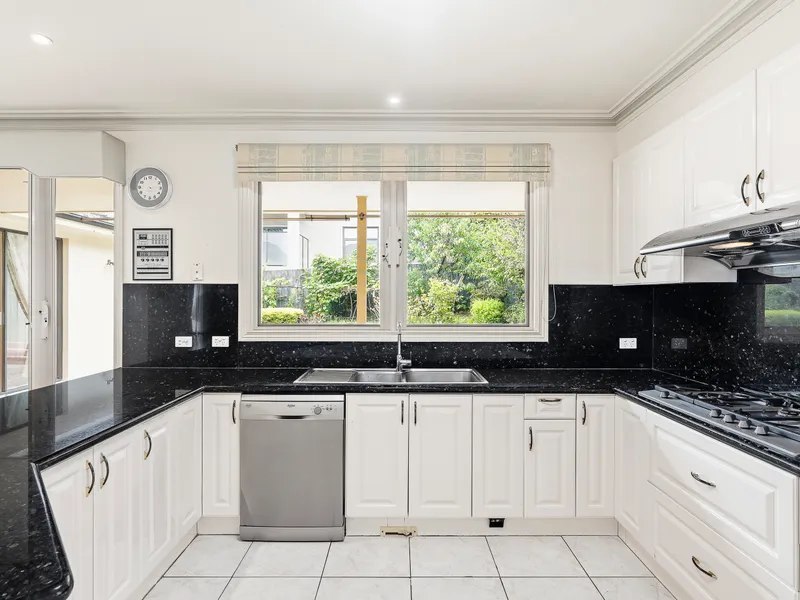 A grand marble-tiled entrance with soaring ceilings creates an immediate sense of sophistication, flowing effortlessly through to elegant formal living and dining areas. At the heart of the home, a well-appointed kitchen appointed with granite benchtops and stainless-steel appliances overlooks a spacious meals and family domain, extending to a separate rumpus room with wet bar and a paved outdoor entertaining area framed by established gardens – ideal for relaxed family living and year-round entertaining.