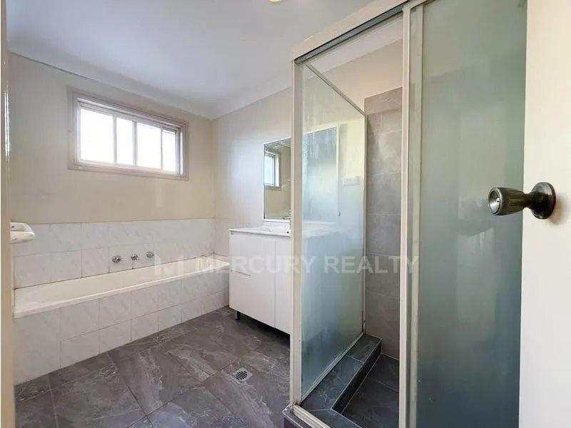 Upstairs includes a bathroom with both a shower and bathtub, and a separate toilet for added privacy. Downstairs, you'll find an internal laundry with a 2nd toilet for extra convenience.