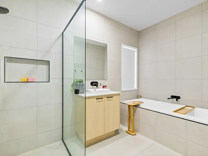 At the heart of the home, the centrally located kitchen offers efficient workflow and family interaction, complete with a pantry, generous bench space, main prep area, and room for a large fridge. It flows directly into the meals and living areas, which open effortlessly to the covered alfresco, enhancing indoor-outdoor living and making entertaining easy.