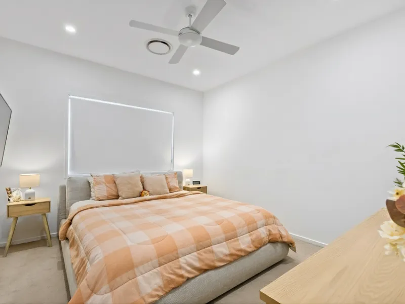 The general layout has been carefully considered for convenience and privacy. Bedrooms 2 and 3 are positioned along the left side of the home, close to the main bathroom and separate WC, making them perfect for children, guests, or roommates. The master suite is tucked away at the rear right for maximum privacy, featuring a generous walk-in robe and ensuite, creating a peaceful retreat separated from the other bedrooms.